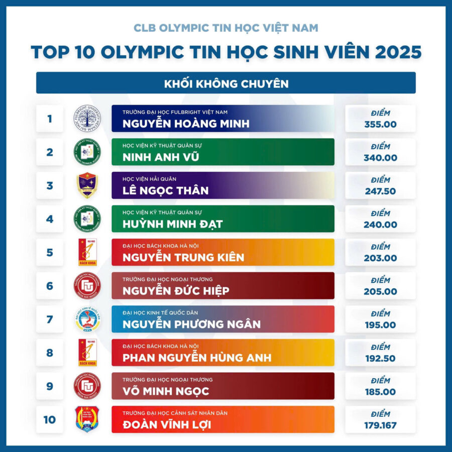 🏆 Thành tích đội tuyển Olympic Tin học 2025
